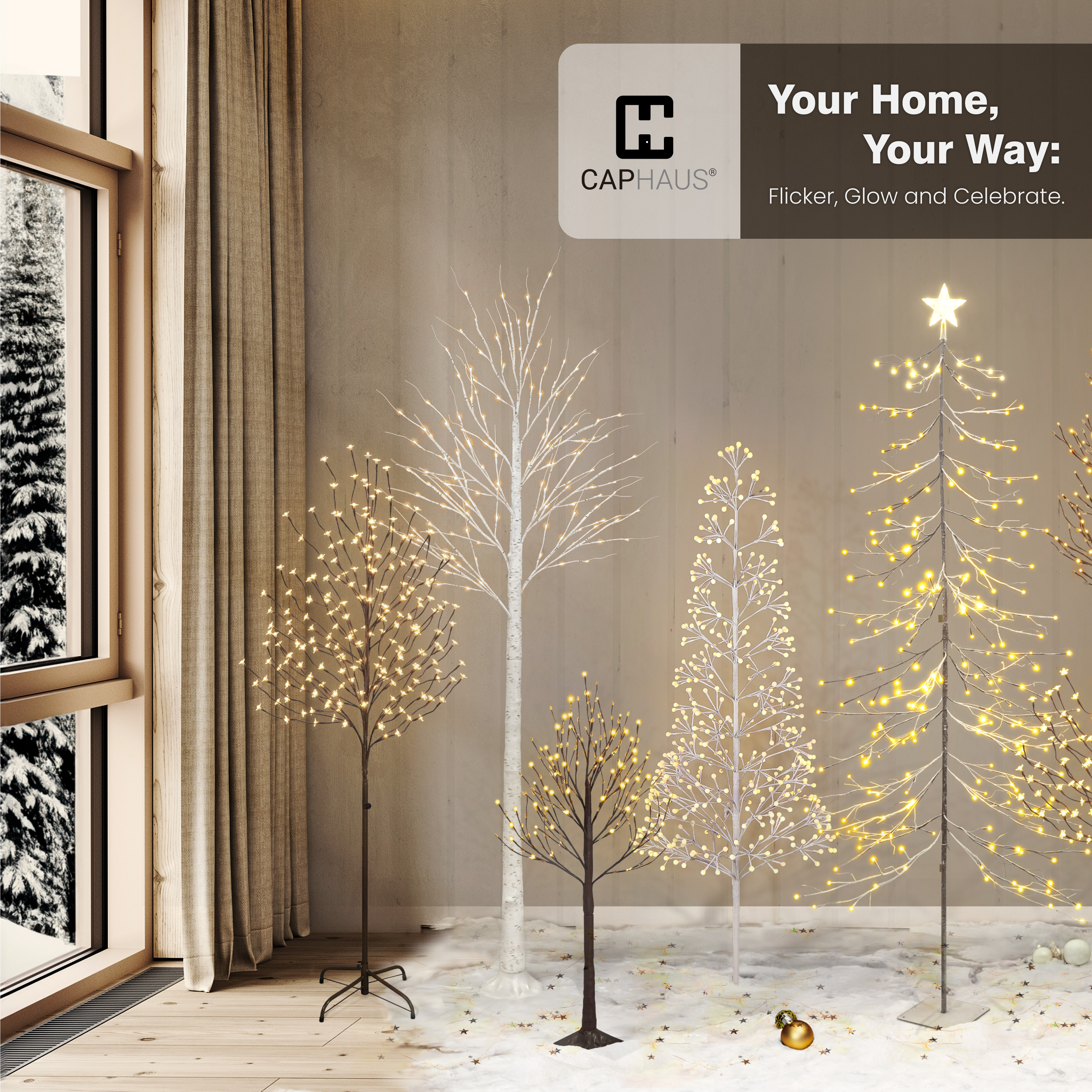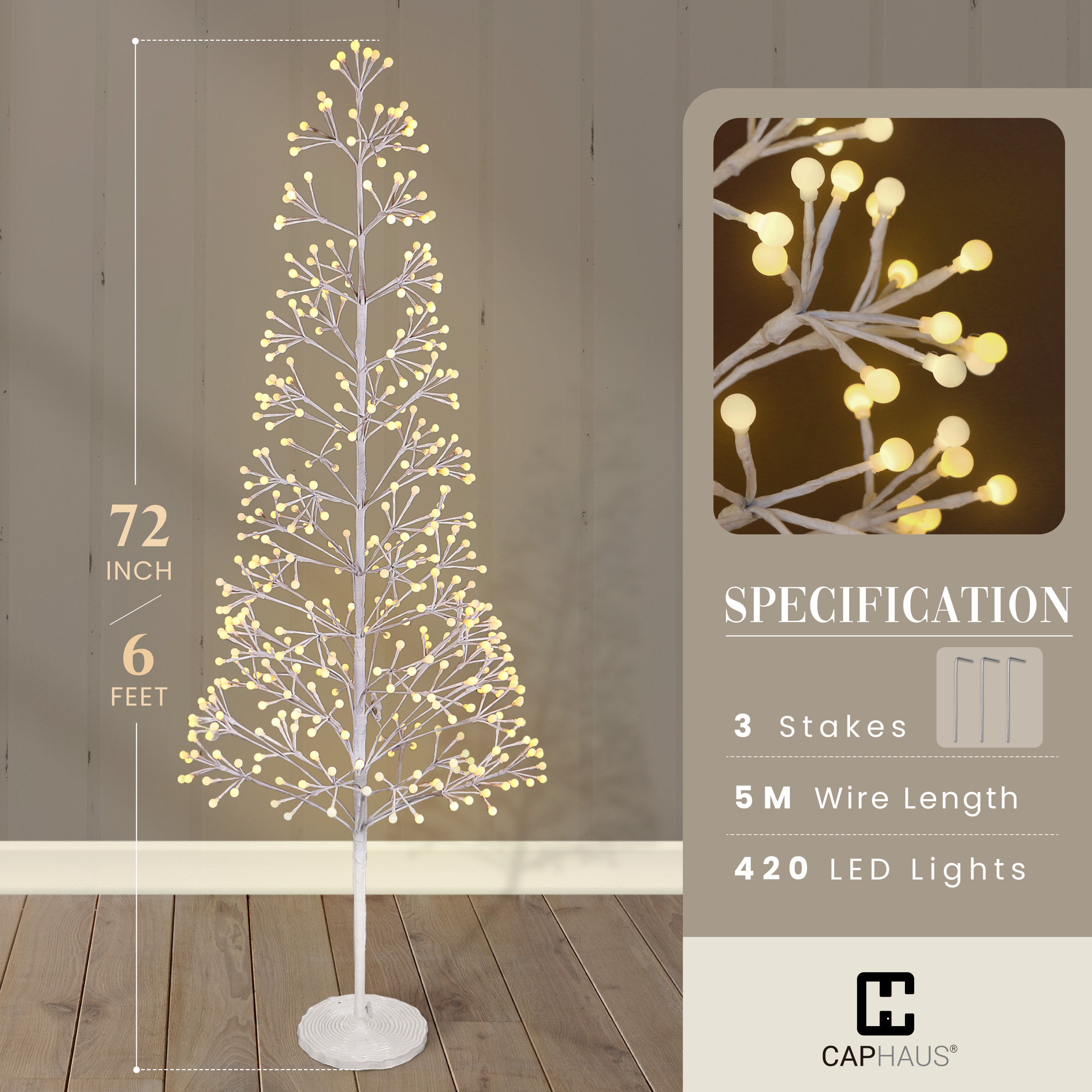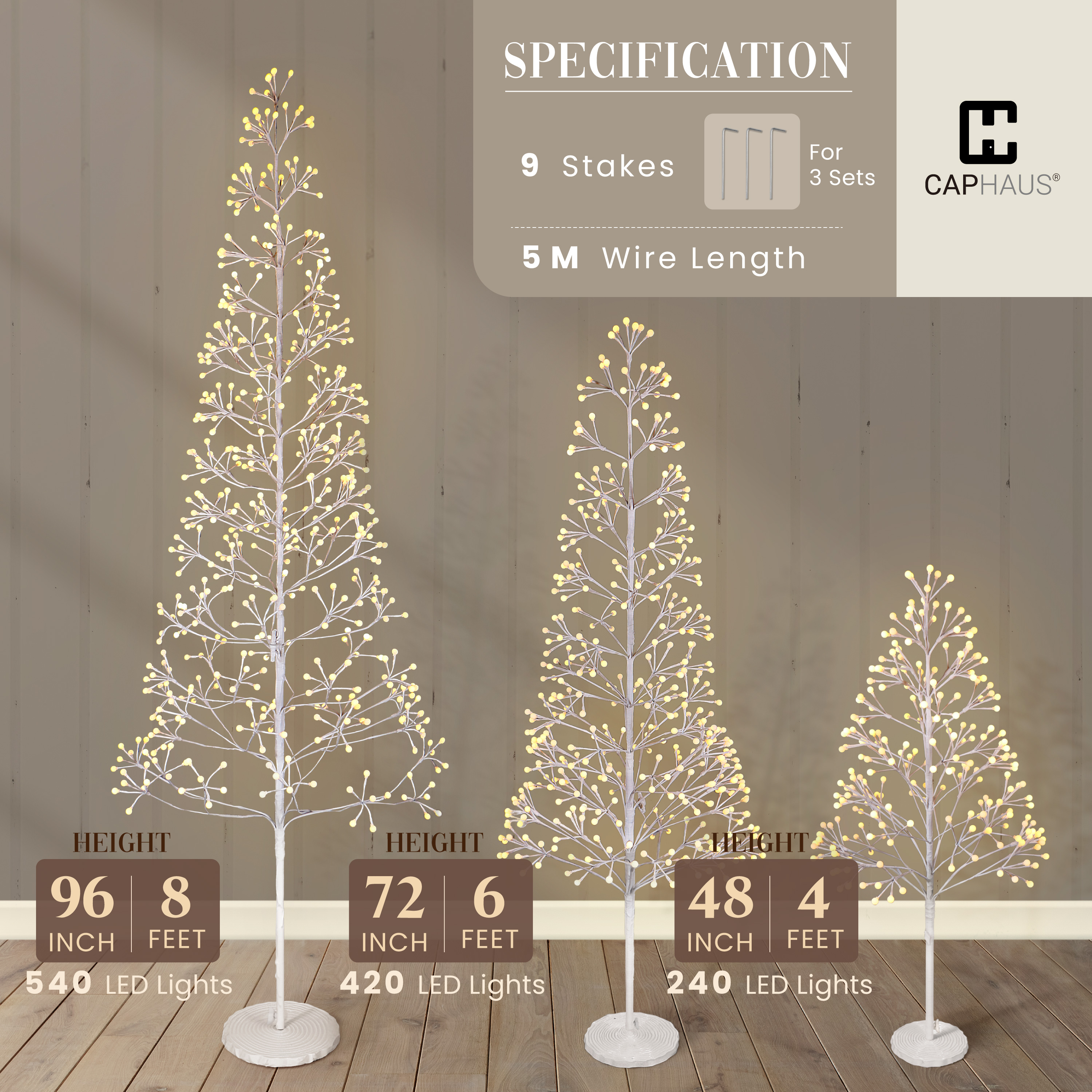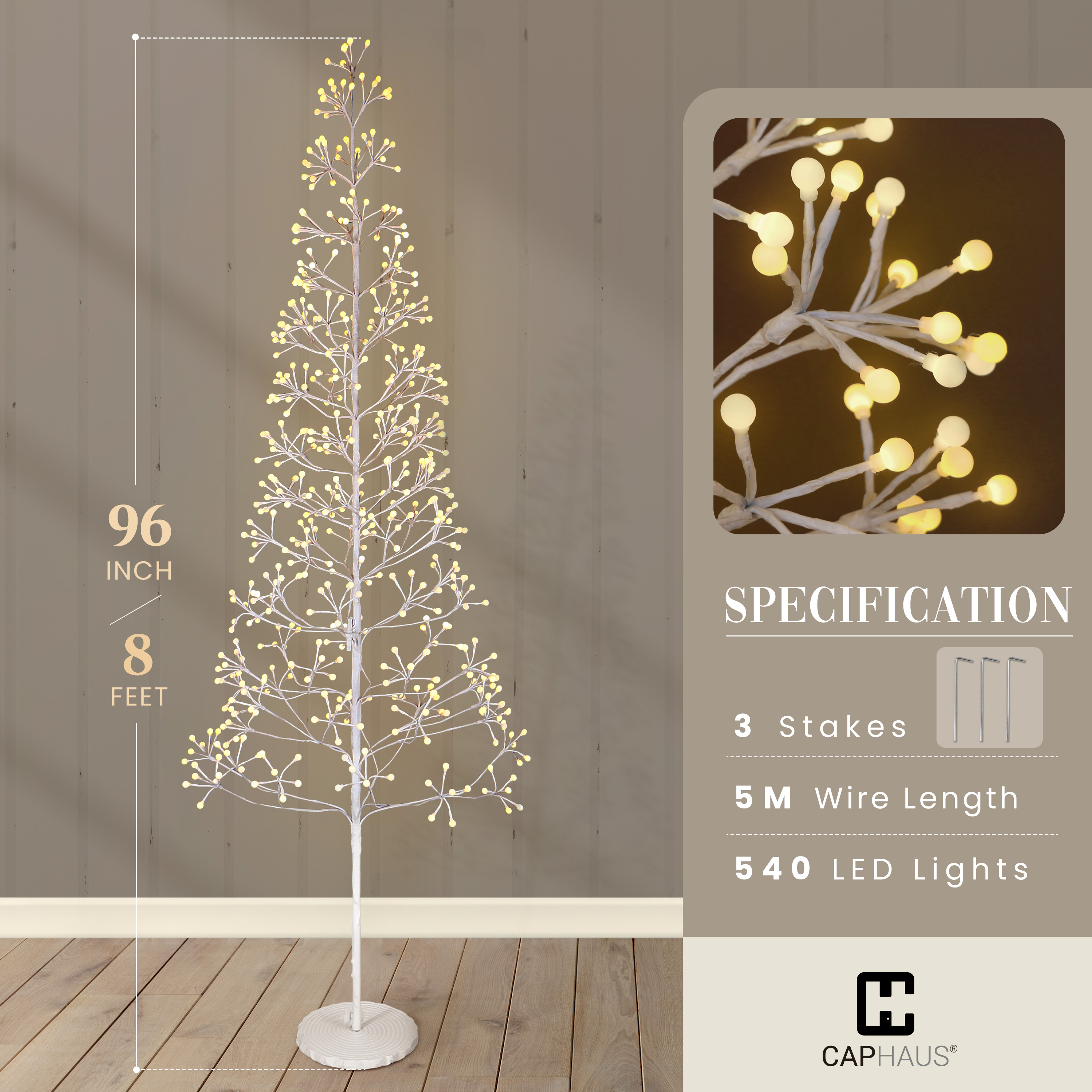 - Warm White LED Lighting: Feature 240/420/540 LED bulbs with 1:2 twinkling and steady lights; combine dynamic sparkle with soft warm glow; press the button to easily switch between flash, steady on, and off modes for customized lighting effects
