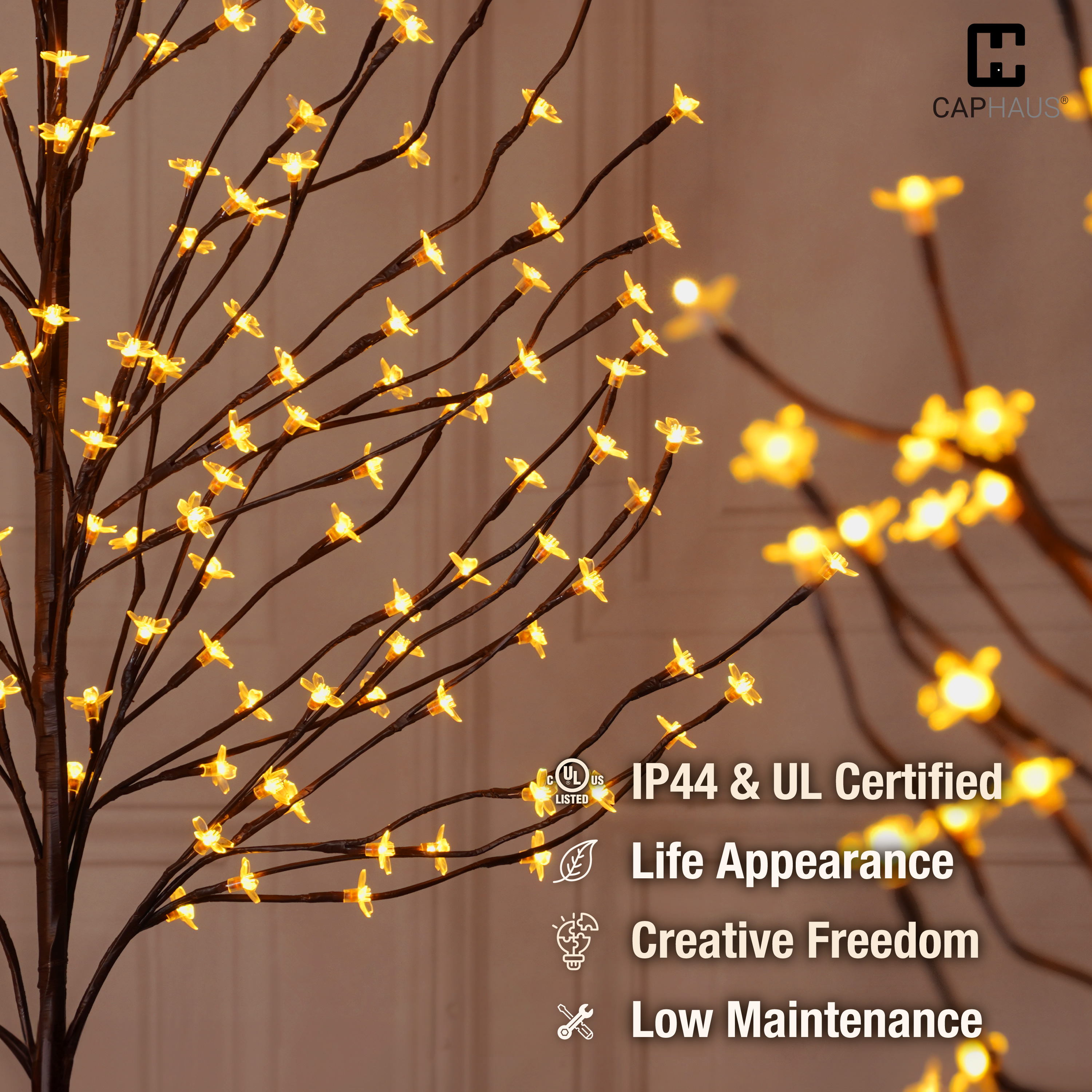 - Eternal Cherry Blossom Beauty: Enjoy the everlasting allure of cherry blossoms in any season. Our lifelike 4ft / 6ft / 8ft cherry blossom Artificial Pre-lit Twinkling Tree features 136 / 208 / 288 crystal clear flower petal twinkling LED lights that exude an enchanting and captivating radiance. The warm white lights cast a soft and cozy glow, making them a delightful addition to any indoor space. Please note that this is an electronic product, it's recommended to use indoors only.
